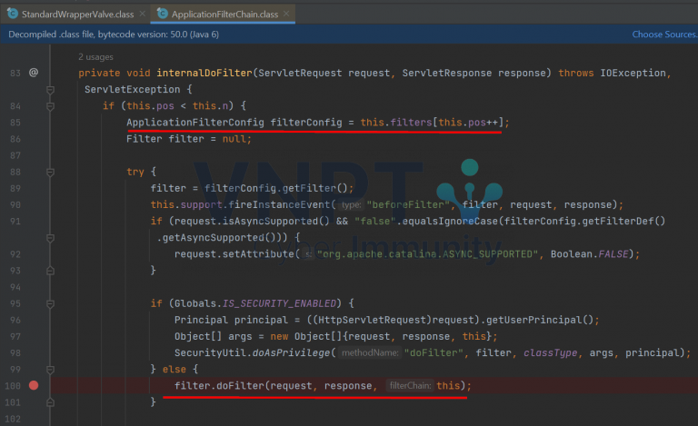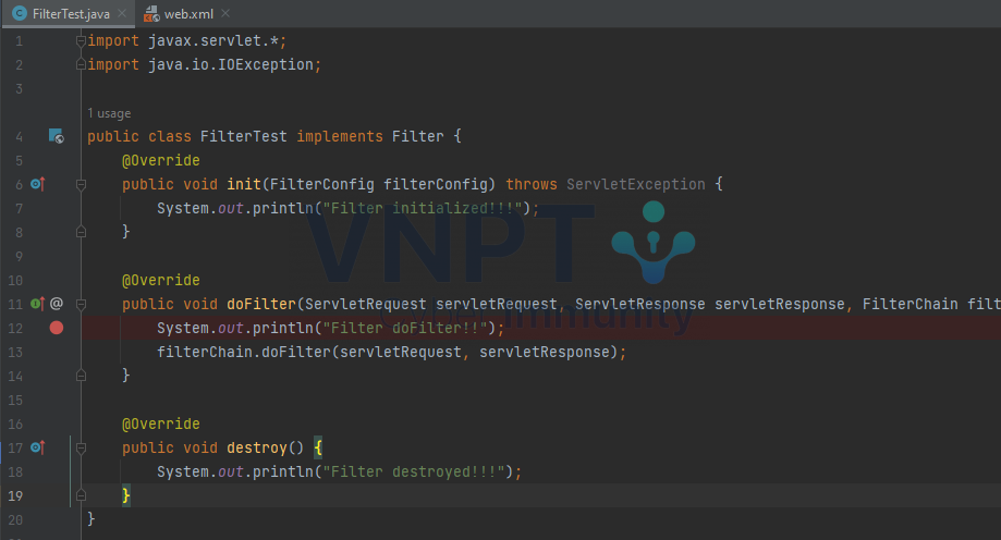 để thực hiện filter tasks. Đặt breakpoint tại FilterTest#doFilter