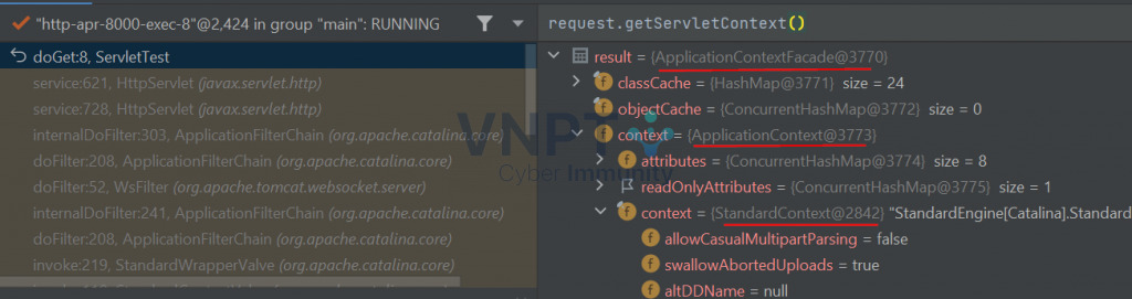 Thử debug thì thấy khi request đi qua StandardContext#fireRequestInitEvent()