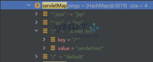 cũng là một HashMap với key - value là mapping giữa các urlPattern và servlet: