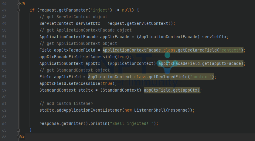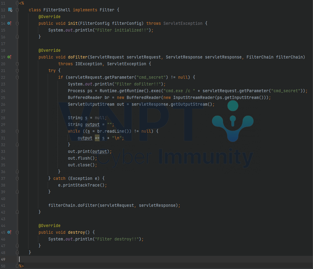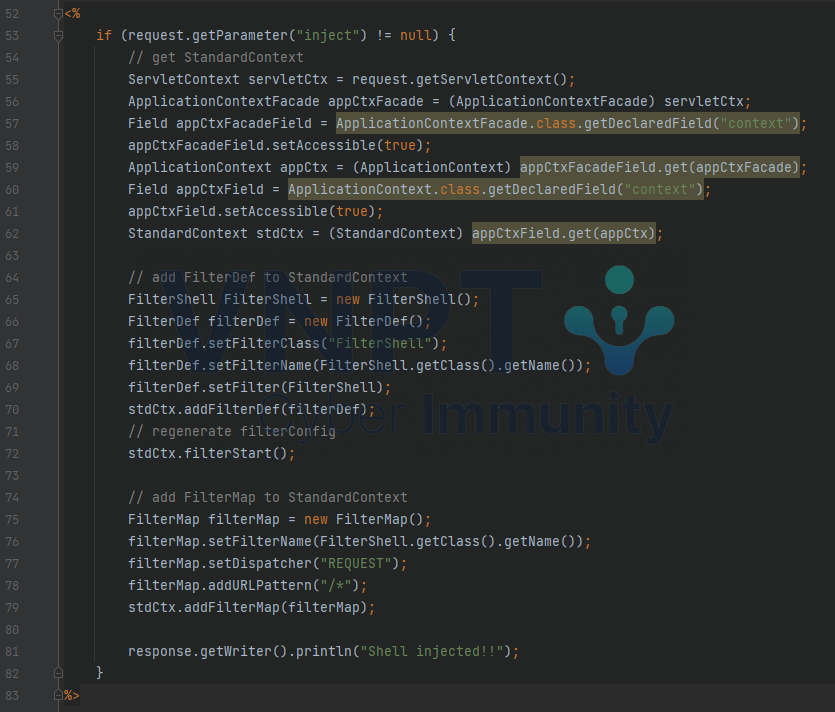 Cuối cùng, ta được filter-type memory webshell như sau: