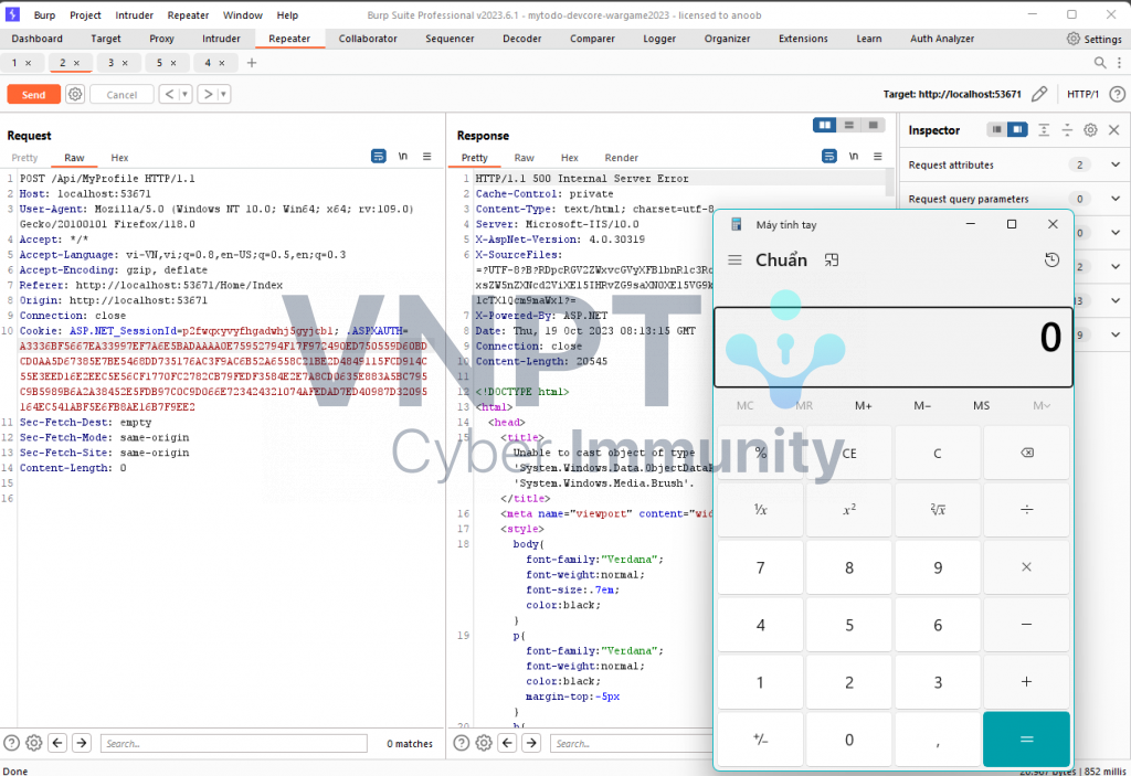 Tiếp đến gửi request đến endpoint sau để thực Deserial và gọi calculator: