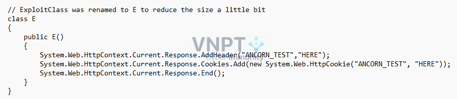 Với file ExploitClass.cs sẽ chứa code response thông qua header set cookie, còn 2 file System.dll và System.Web.dll có thể tự kiếm trong các folder của .Net framework và copy vào thư mục cùng cấp của ysoserial.net để tiện execute