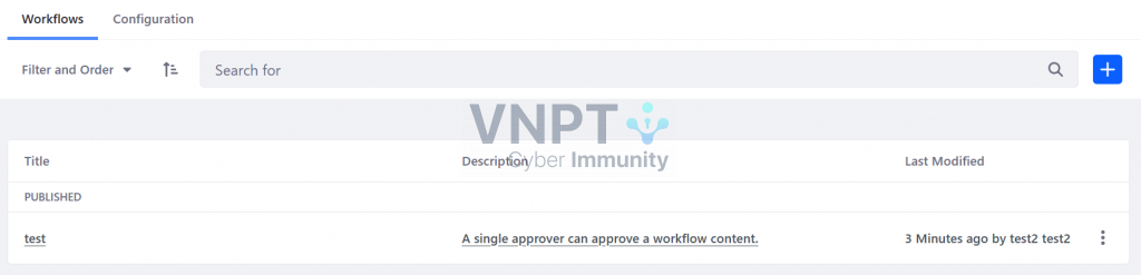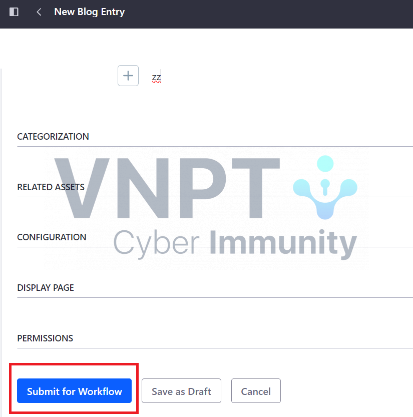 Khi thực hiện tạo Blog mới sẽ xuất hiện nút Submit for Workflow
