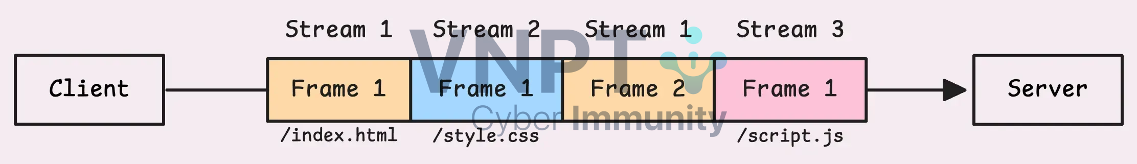 - Mở luồng mới: Gửi một frame HEADERS hợp lệ để yêu cầu máy chủ mở một luồng (stream) mới.