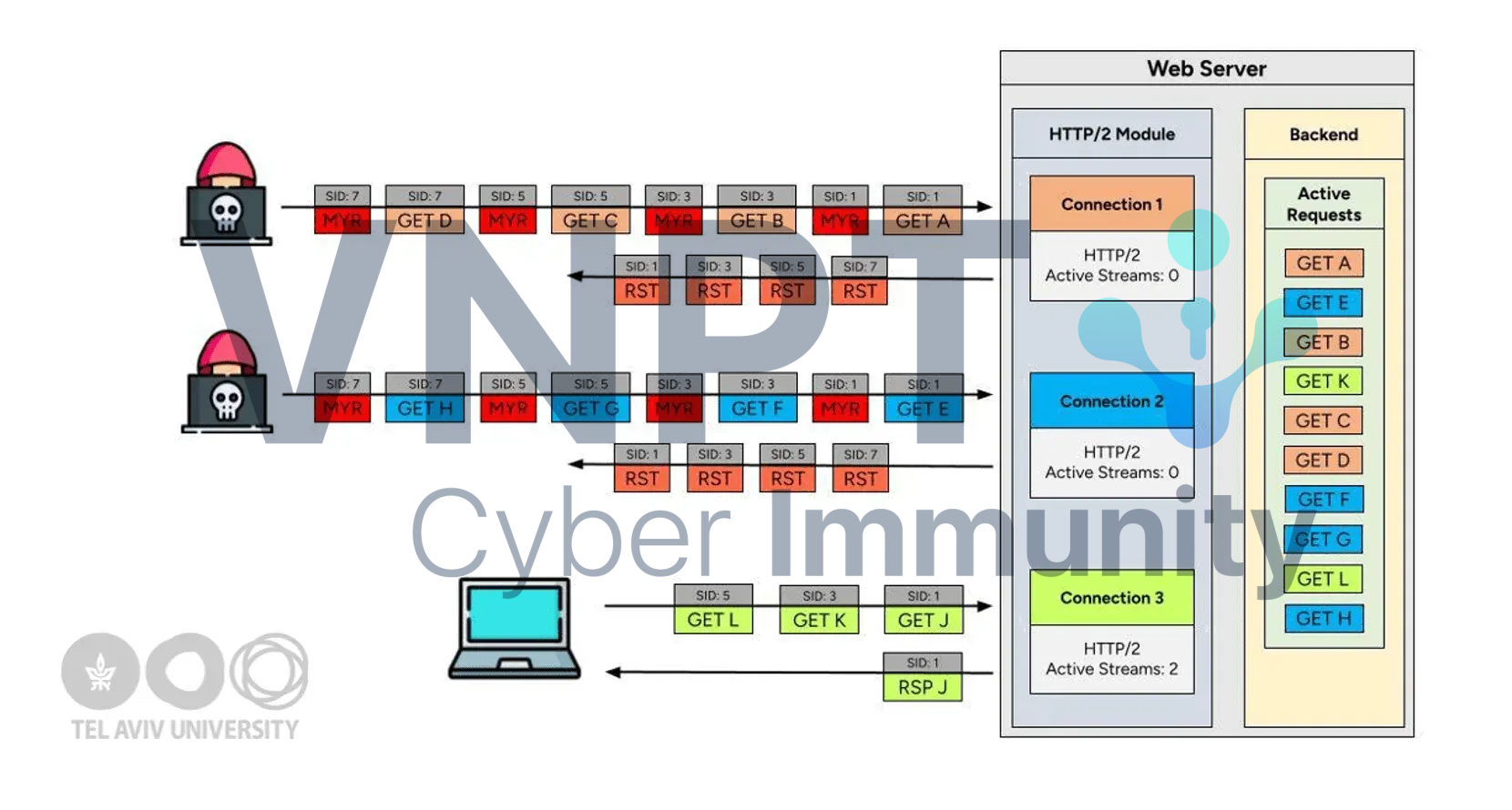 Vào ngày 13 tháng 8 năm 2025, cộng đồng an ninh mạng toàn cầu đã ghi nhận sự công bố của một lỗ hổng DoS nghiêm trọng, ảnh hưởng đến nhiều máy chủ web sử dụng giao thức HTTP/2. Lỗ hổng này, được đặt tên là "MadeYouReset" và định danh bằng mã CVE-2025-8671, được phát hiện bởi các nhà nghiên cứu từ Đại học Tel Aviv và công ty bảo mật Imperva. Với điểm CVSS 3.1 là 7.5 (Mức độ Cao), lỗ hổng này phản ánh một rủi ro đáng kể do độ phức tạp tấn công thấp nhưng lại gây tác động lớn đến tính sẵn sàng của dịch vụ. Điều quan trọng cần nhấn mạnh là MadeYouReset không phải là một khiếm khuyết trong bản thân đặc tả giao thức HTTP/2, mà là một điểm yếu phổ biến trong cách các nhà cung cấp phần mềm triển khai logic quản lý trạng thái của giao thức.