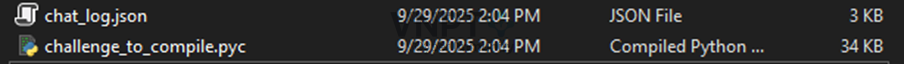 Challenge pyc file (challenge_to_compile.pyc) can be decompiled back to python code, not 100% but enough for us to understand the logic of this chat app.