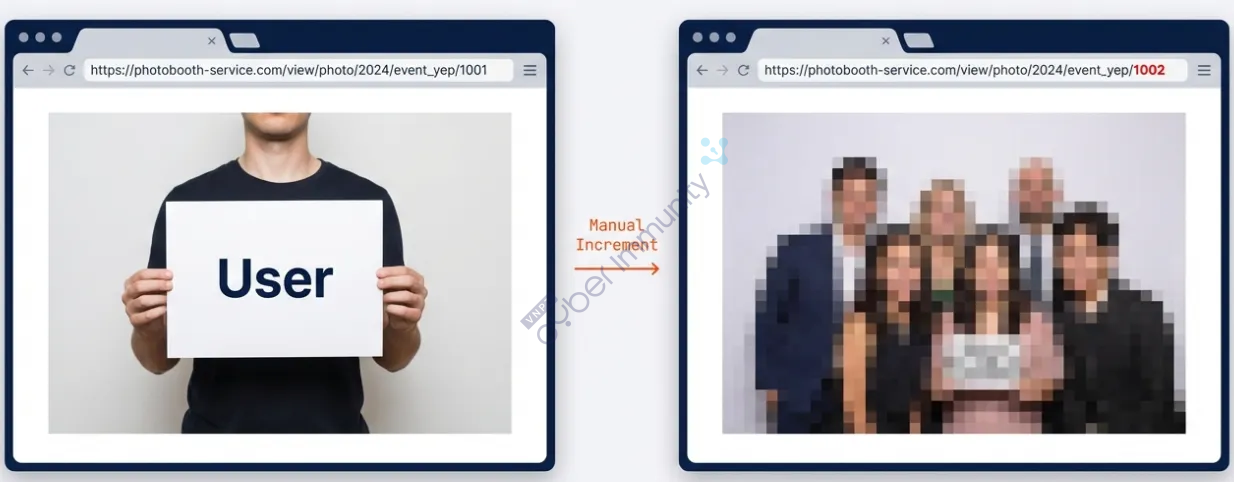 Điều trớ trêu nhất ở lỗ hổng này là nó không hề đòi hỏi bất kỳ kỹ năng tấn công cao siêu nào. Không cần hiểu sâu về cryptography, không cần exploit memory corruption, thậm chí cũng chẳng cần mở Burp Suite cho có không khí. Một kịch bản tấn công đơn giản đến mức gần như không cần kỹ thuật cao: kẻ tấn công chỉ cần recon sơ bộ hệ thống photobooth, rồi đi chụp ảnh ở vài cửa hàng, tham gia một vài sự kiện, hoặc thậm chí chỉ cần xin được một tấm ảnh bất kỳ từ ai đó. Quét QR code đi kèm là đã có trong tay URL truy cập trực tiếp tới ảnh — điểm khởi đầu quá đủ cho mọi thử nghiệm “tò mò” tiếp theo.