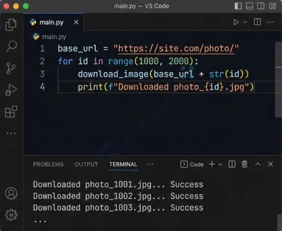 Quan sát thêm vài giây, hacker bắt đầu nhận ra một chi tiết rất quen: ID ảnh tăng đều theo thời gian, ngay ngắn, trật tự và rất… đáng nghi. Từ khoảnh khắc đó, mọi thứ trở nên cực kỳ đơn giản. Chỉ cần một đoạn script ngắn, tăng dần ID, gửi request lặp đi lặp lại, rồi ngồi nhìn ảnh lần lượt tải về.