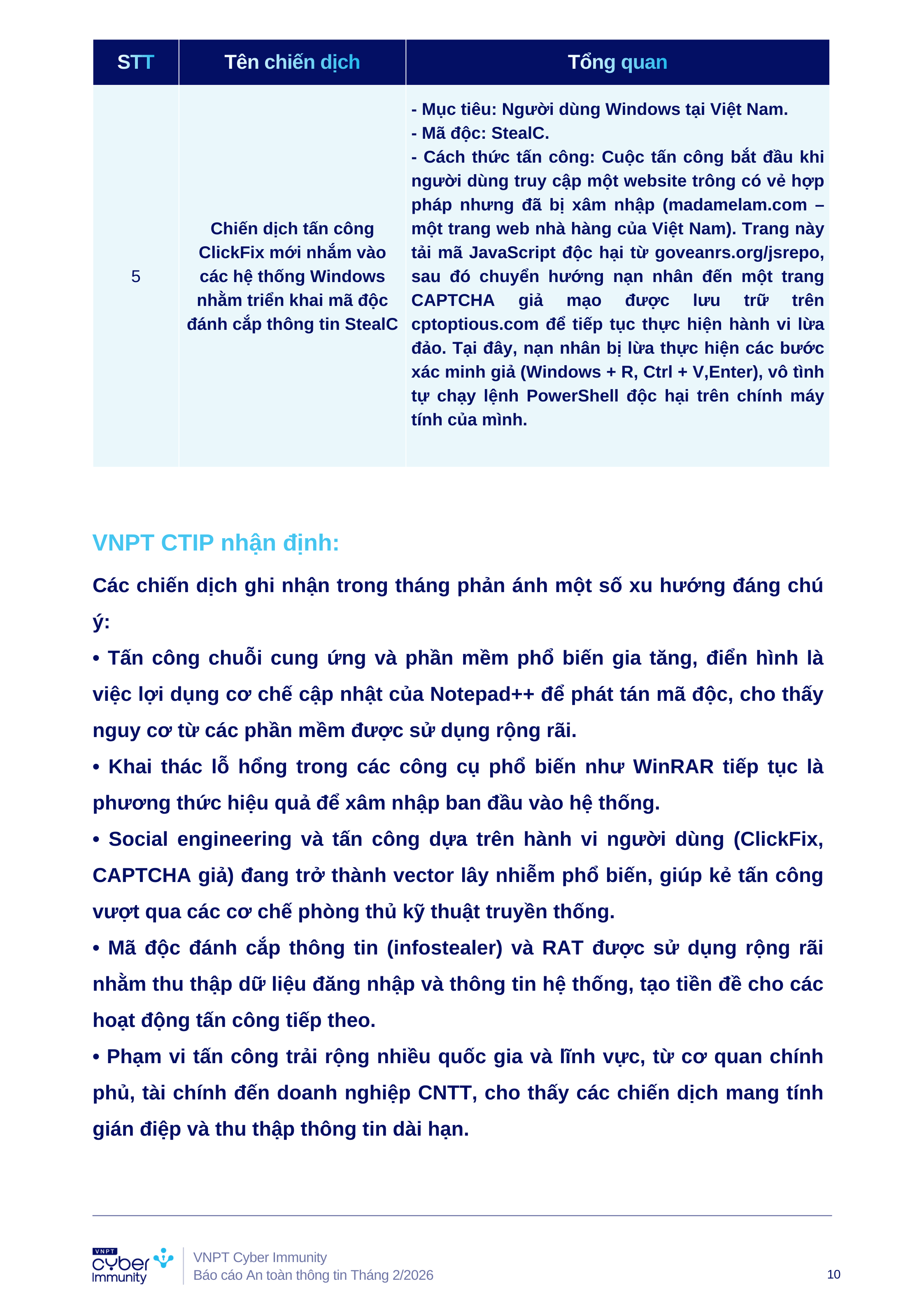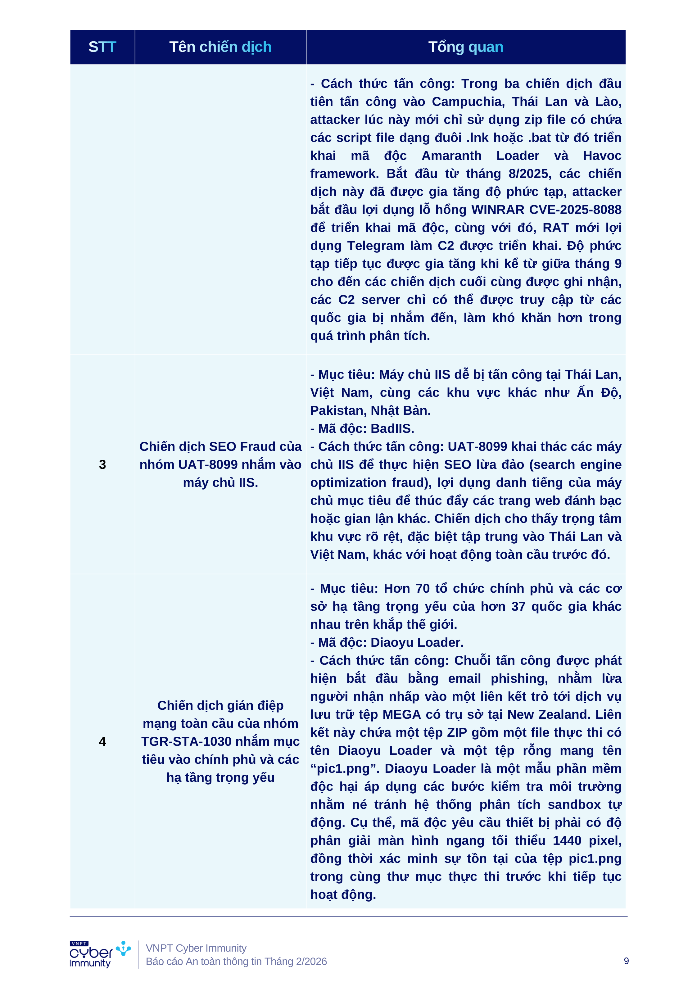 Báo cáo tình hình An toàn thông tin tháng 2/2026