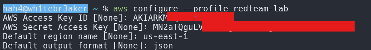 aws configure --profile redteam-lab